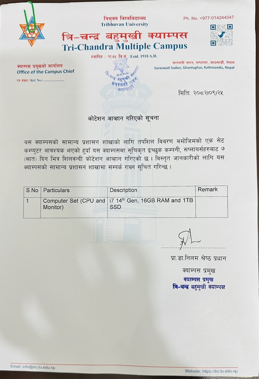 फोटोकपी सेवाको १५ दिने सूचना ।