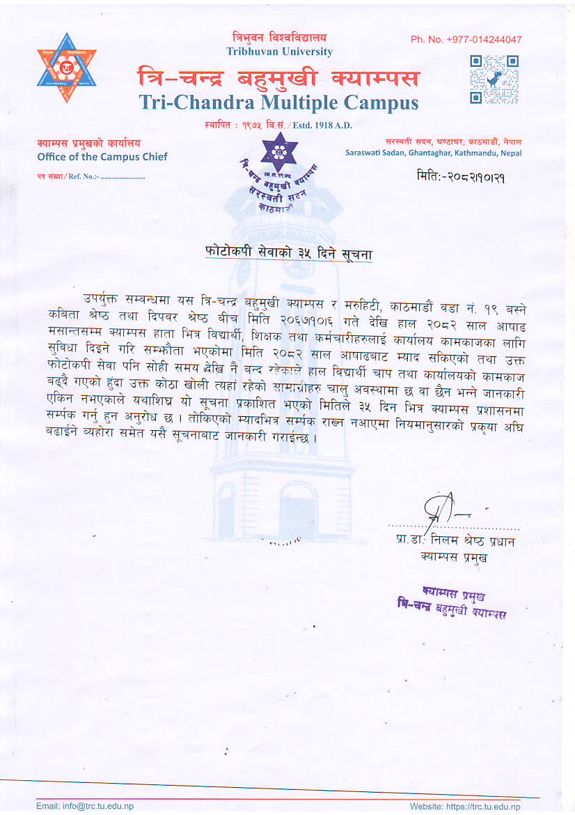 फोटोकपी सेवाको १५ दिने सूचना ।