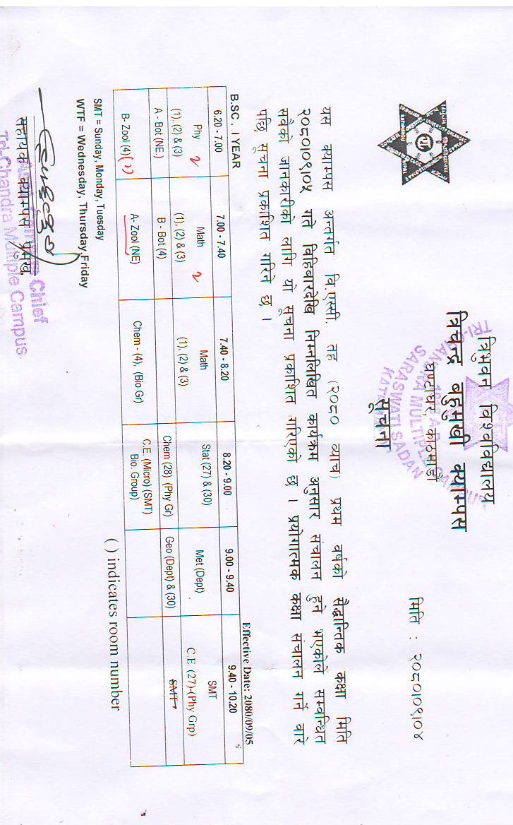 Class Routine of B.Sc. First Year 2082